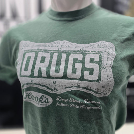 Proceeds from this tee benefit the historic Hook's Drug Store Museum, located at the Indiana State Fairgrounds.