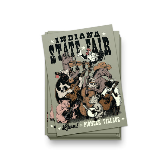 Live at the Indiana State Fair's Pioneer Village! Show off your love for bluegrass music with the Bluegrass Band Sticker - featuring the Goat Mountain String Band and Friends.