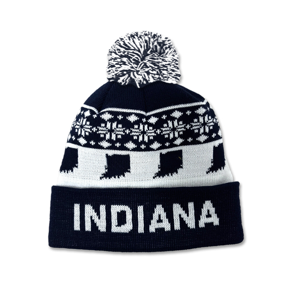 Custom-knit, classic pom beanie for those who love Indiana.
