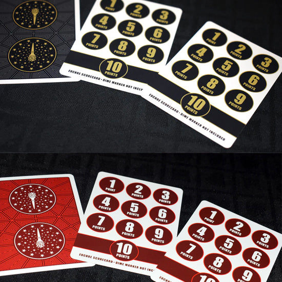Created by our Hoosier friends at Midnight Cards, the Indiana Euchre Deck includes two full Euchre Decks in one box (Maroon / White and Black / Gold).