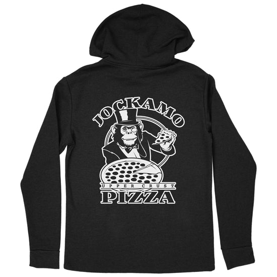 Unisex fit pullover hoodie featuring "There's a Monkey on My Back" on the front and the Jockamo logo on the back.