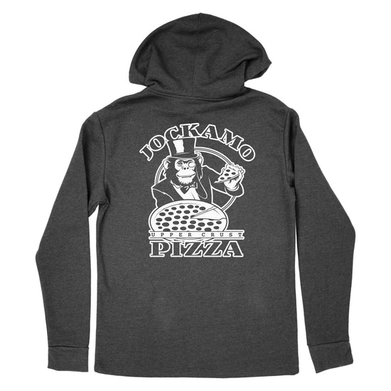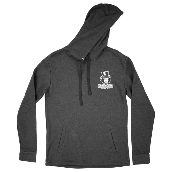 Unisex fit pullover hoodie featuring Jockamo's iconic monkey logo small on the front and big on the back. Jacket-style, separated pockets on front.