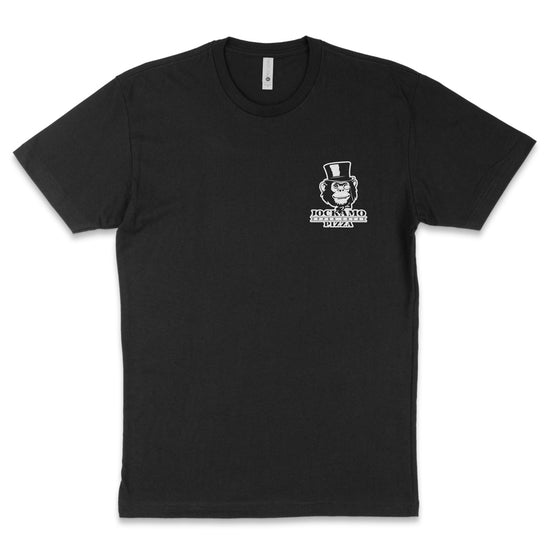 Unisex fit tee featuring Jockamo's iconic monkey logo small on the front and big on the back.