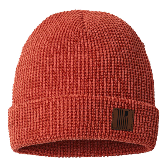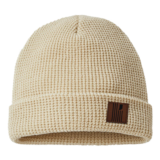 Keep it simple with a high-quality beanie featuring a thick waffle knit and USI's logo on a etched leather patch.
