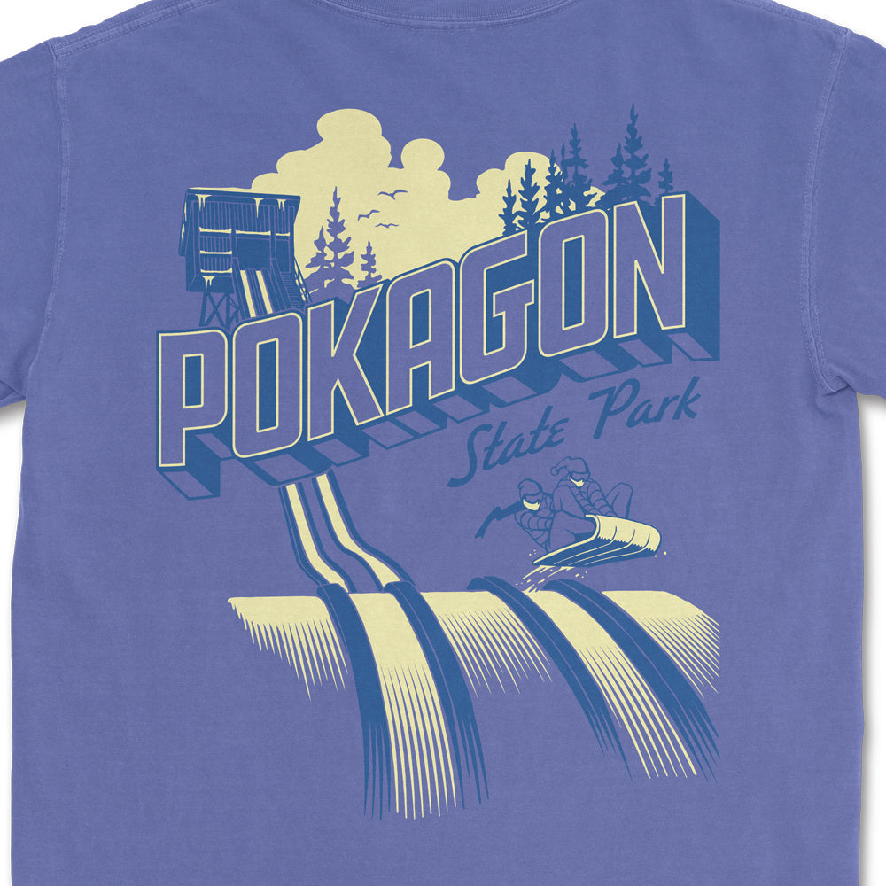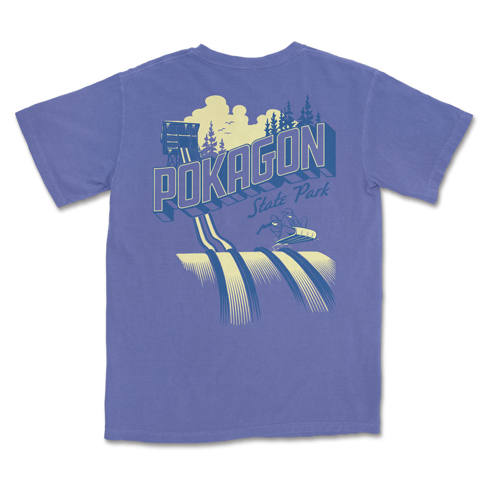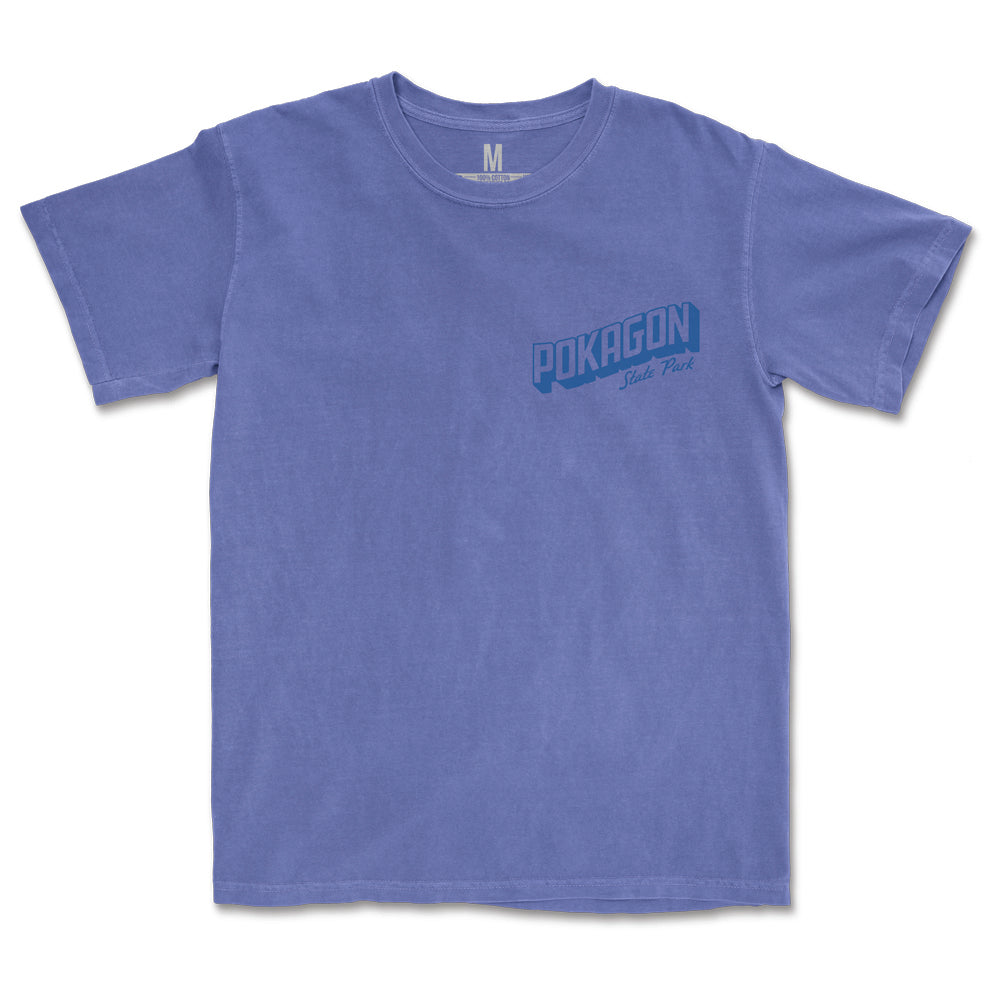 This shirt is printed on a comfortable, heavyweight Comfort Colors tee and is designed, printed, and packed right here in Indiana. Grab one before your next Pokagon adventure!