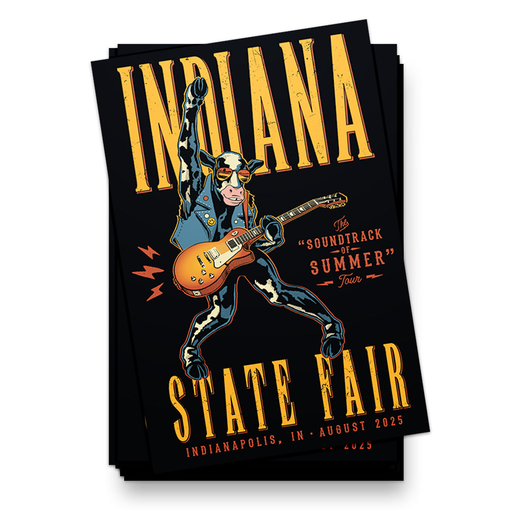 Send a little piece of Indiana State Fair fun with the Rock 'n' Roll Cow Postcard!