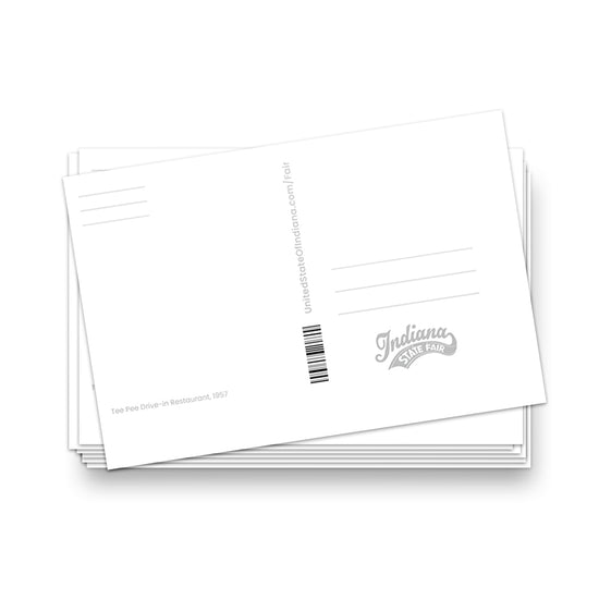 This postcard features a historic photo of the legendary Tee Pee restaurant, which stood at the corner of 38th Street and Fall Creek, the present-day home of the Indiana State Fairgrounds.